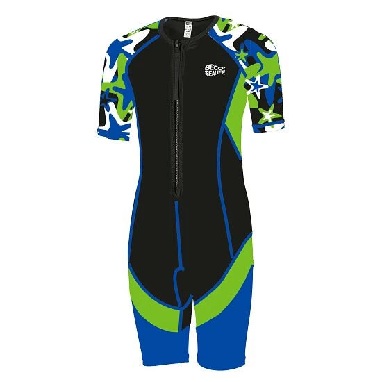 Der Beco-Sealife NeoprenMarkenname für einen Chloropren-Kautschuk. Es ist besonders wärmeisolierend. Verwendung findet dieser Stoff z.B. bei der Herstellung von Schwimmanzügen und beim Automobilbau. Shorty besteht aus 2 mm starkem SCR-NeoprenMarkenname für einen Chloropren-Kautschuk. Es ist besonders wärmeisolierend. Verwendung findet dieser Stoff z.B. bei der Herstellung von Schwimmanzügen und beim Automobilbau. mit ElasthanElasthan ist eine dehnbare und sehr robuste Kunstfaser. Ihre Eigenschaften sorgen für eine bequeme Passform und hohen Tragekomfort.-Einsätzen an den Armen und den Beinen.