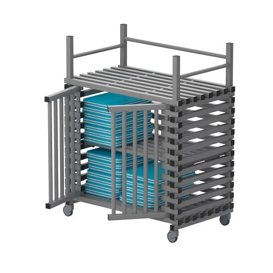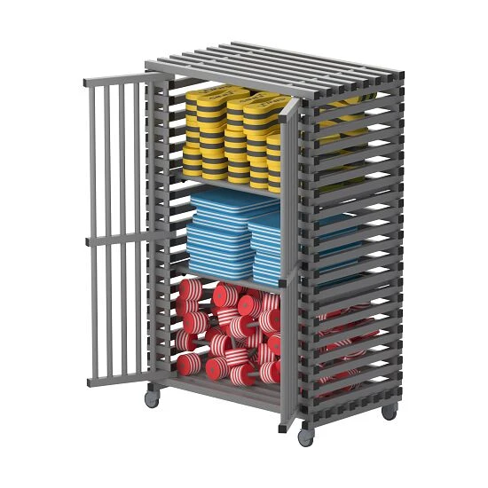 Sie suchen einen abschließbaren Materialwagen für das Schwimmbad? Dann kaufen Sie den Sport-Thieme Regalwagen für Schwimmbad-Equipment by Vendiplas.