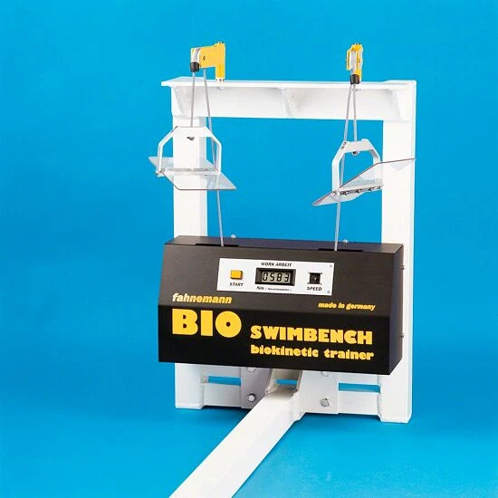 Die Bio-SwimBench besteht aus einer Trainingsbank, Seilen und Paddles. Die Trainingsbank ist fest stehend und mit einem Auflagepolster versehen, durch das bequem trainiert werden kann. Die isokinetische Trainingsbank besitzt eine elektronisch geregelte Widerstandseinheit wie beim BioMeter, jedoch reduzierten Auswertungsmöglichkeiten. Zudem zeigt das Display die Arbeit (in Nm) und Geschwindigkeitswahlregler für 10 Stufen an. Integrierter Rechnerausgang zur Verwendung der optionalen Software oder eines Druckers. Die SwimBench mit zusätzlicher Software zeigt die Bewegung, die der Schwimmer aufbringt, in einer Kurve an.